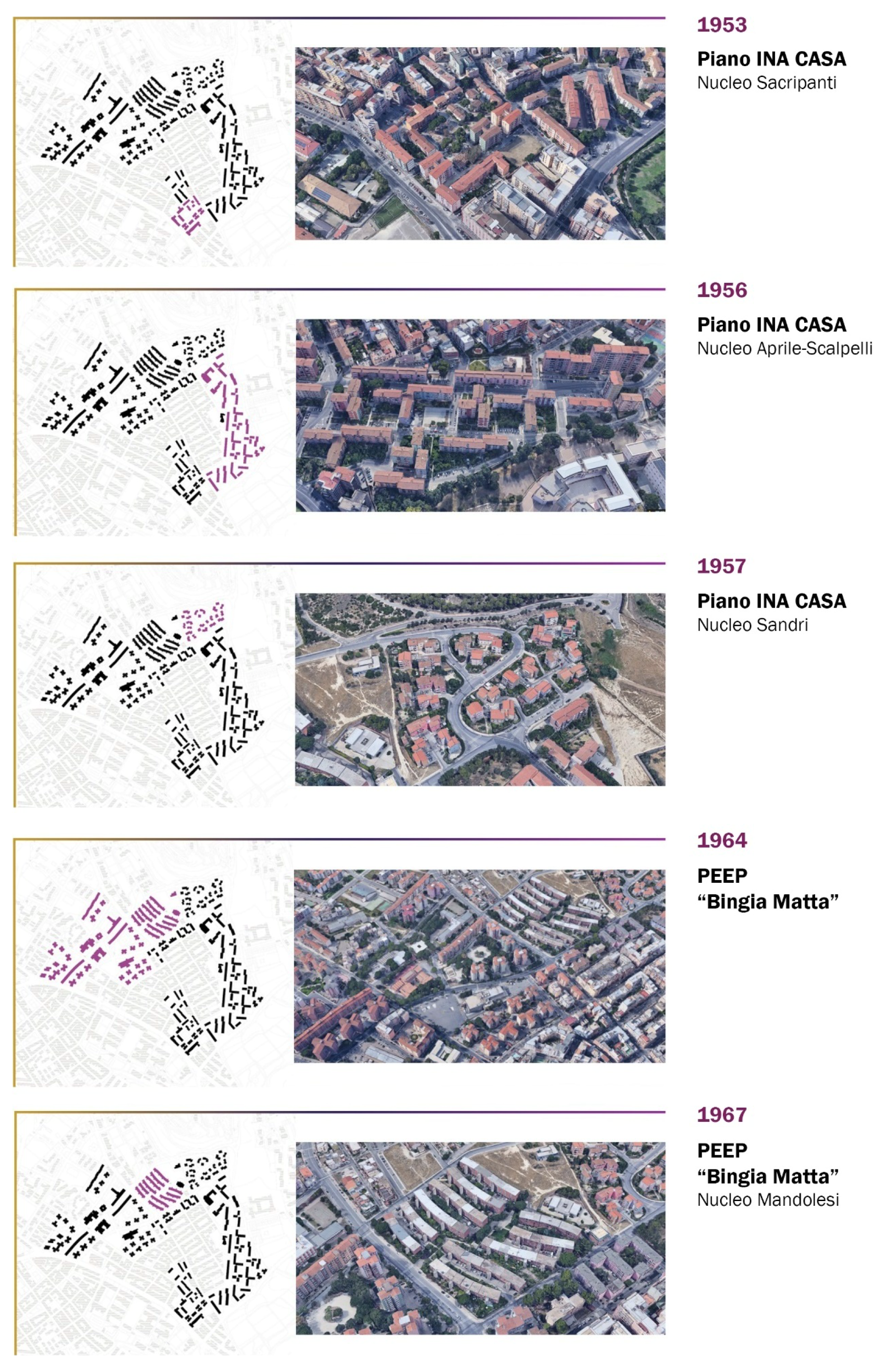 4) si tratta di una periferia che si è formata per successive addizioni di complessi immobiliari, frammentati, che risentono della mancanza di una visione unitaria, dove i “luoghi” spesso sono poco identitari per il quartiere.